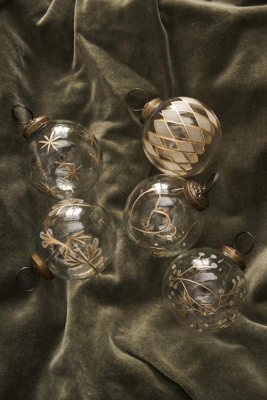 Christmas Bauble - White/Brass look with gold engraving. Set of 5.