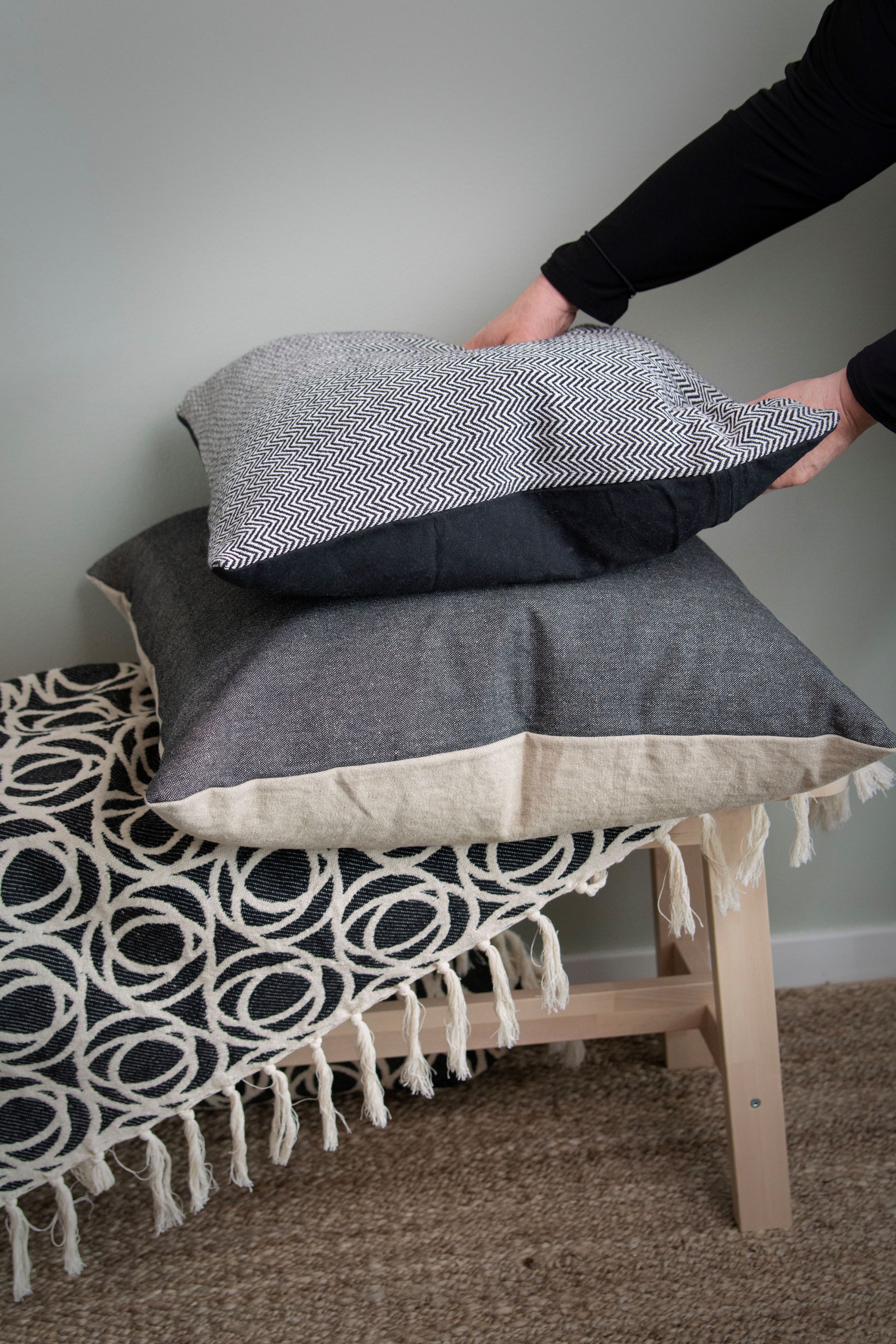 Measuring at 60 x 60cm, our Banne cushion cover is designed to fit standard-sized cushions, instantly transforming your space with its modern appeal. The double-sided design allows you to effortlessly switch between two complementary colors, providing flexibility to match your mood or change up your décor.
