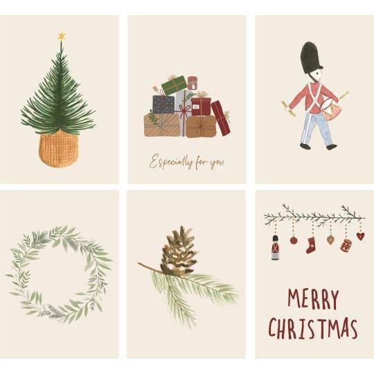 Share the joy of the season with these delightful Christmas cards, each featuring a unique festive motif. Perfect for sending warm holiday wishes to loved ones, these compact cards (width: 7.3 cm, height: 10.5 cm) add a personal touch to your season's greetings. Charming and versatile, they're ideal for spreading holiday cheer in style.
