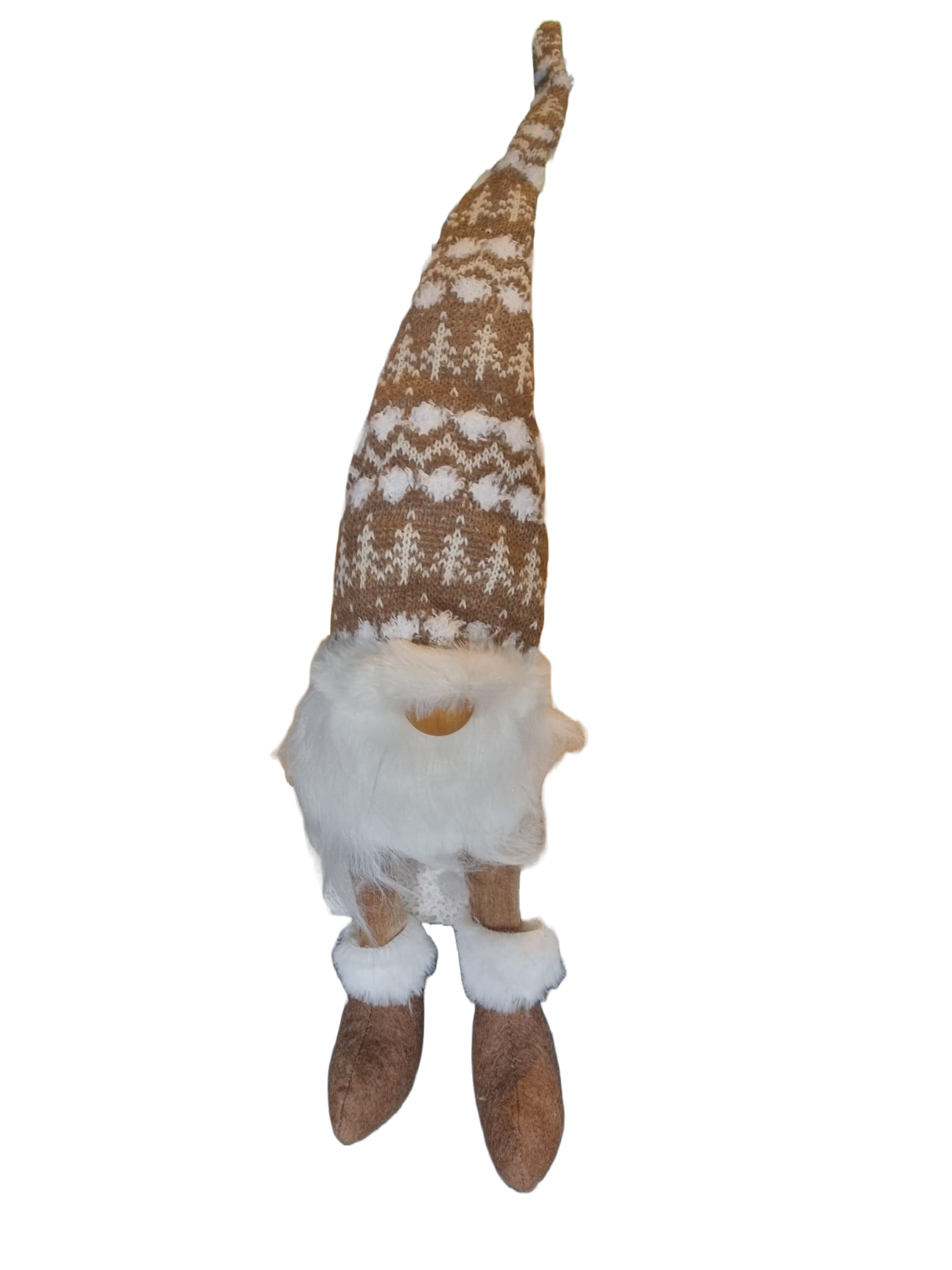 Embrace the festive season with our charming Scandinavian Gnome, dressed in warm brown attire adorned with delightful white patterns that capture the essence of Christmas. Standing tall at a delightful 8 x 40 cm, this endearing gnome is lovingly crafted from soft and plush textile material, making him the perfect addition to your holiday décor.