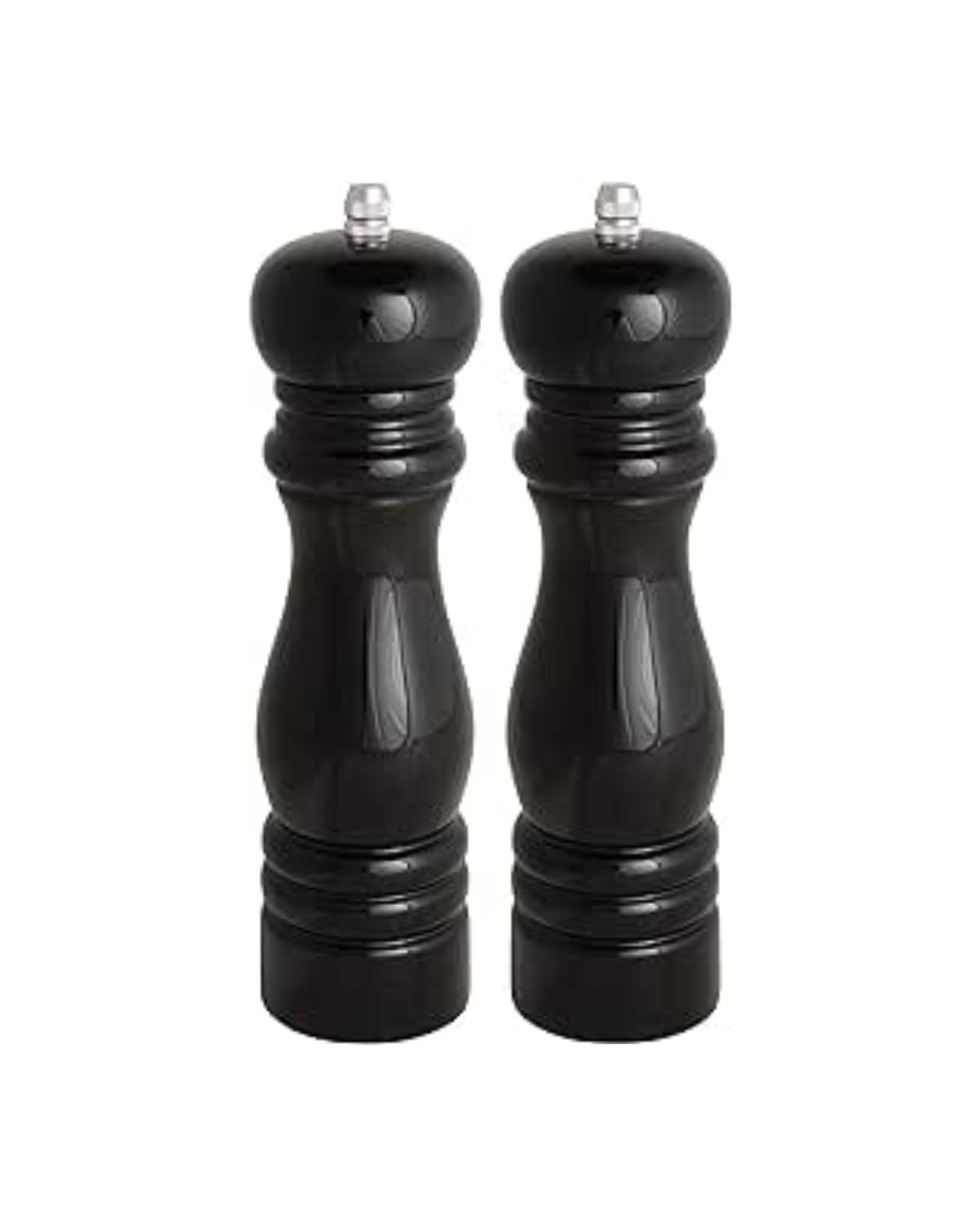 These charming salt and pepper grinders in a black color are designed to add a touch of rustic elegance to your kitchen or dining table. Crafted from durable wood, these grinders effortlessly combine functionality with a hint of natural charm.