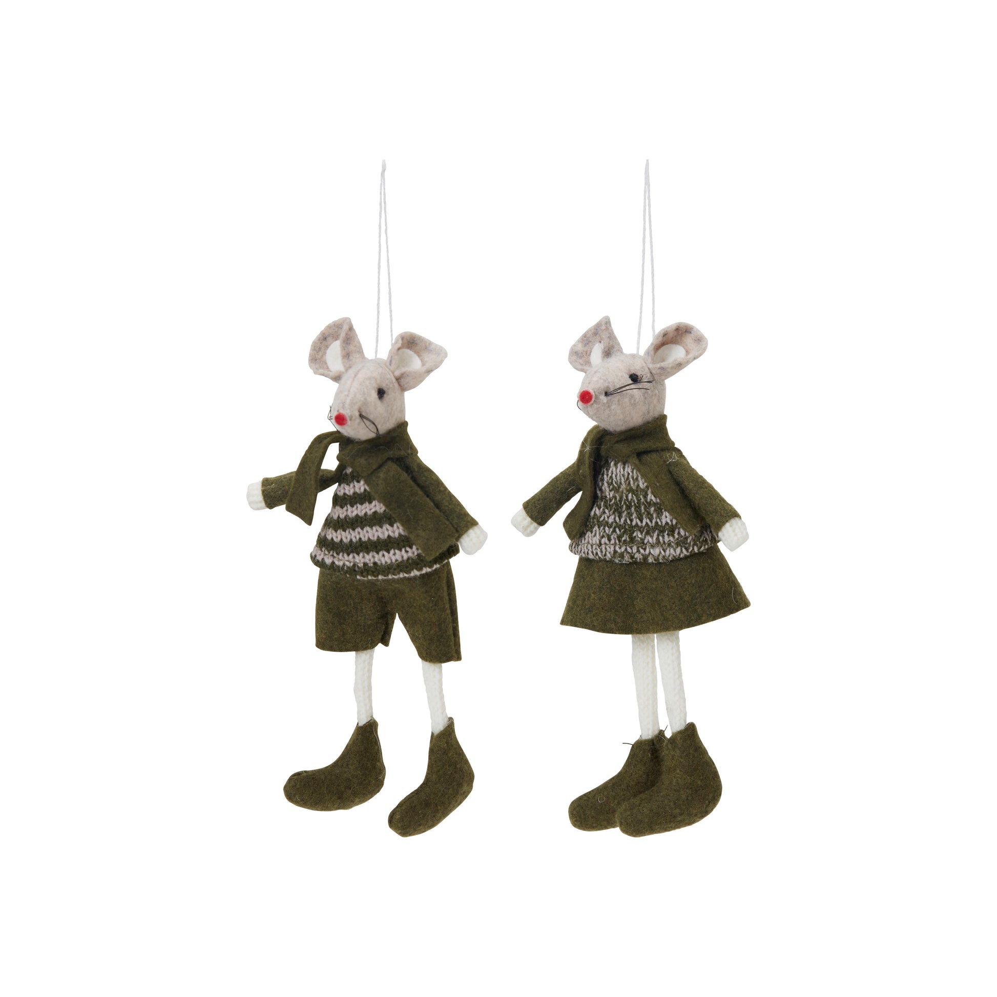 Meet Sixten Mouse, a charming textile decoration perfect for adding a whimsical touch to your holiday décor. Dressed in a knitted beige and green jumper, green hat, shorts, and boots, this 16cm-long mouse embodies cozy Scandi style. Sixten brings warmth and character to your Christmas tree or festive displays. A delightful addition for creating a playful and nostalgic holiday atmosphere.